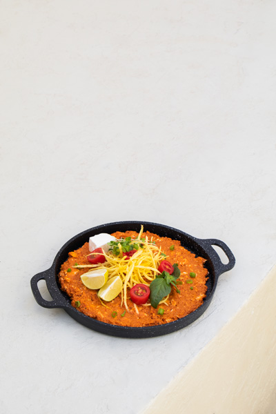 پوره سیب زمینی + نیمرو + کراکف پنیری + کوکتل
