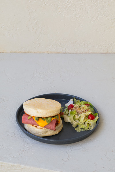 نان + بیکن گوشت + تخم مرغ + پنیر مخصوص + سالاد